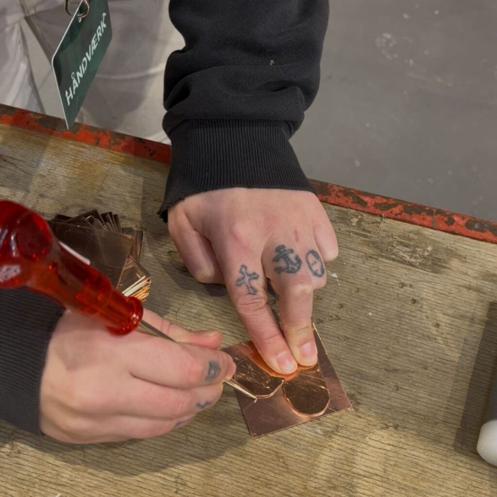 En masse interesserede tværfaglige hænder, gode snakke og ikke mindst en masse klippede kobber hjerter af de besøgende.