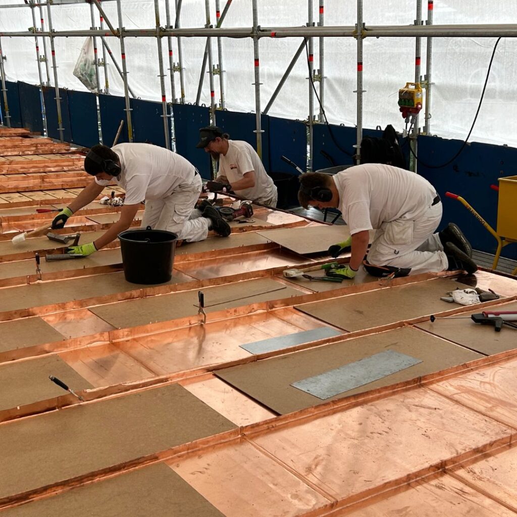 Et udskiftningsklart kobbertag er igangsat og skal renoveres af egne hænder både vores tømrer og blikkenslagere i totalentreprise.